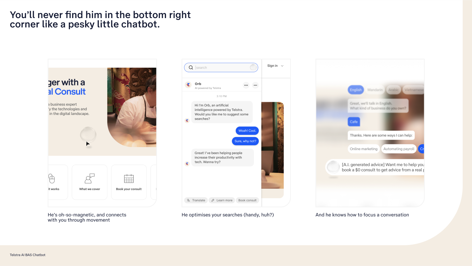 Telstra was experimenting with A.I., and in the process created a new kind of chatbot – smarter than the rest. Now they needed an identity.
